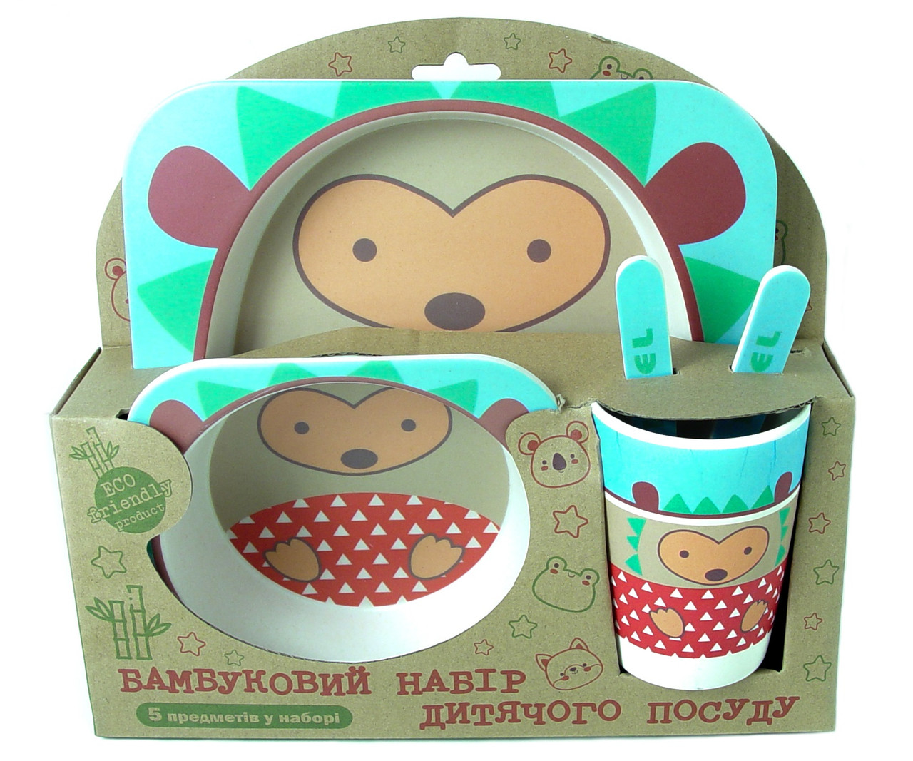 Опис Набору дитячого посуду з бамбукових Stenson MH-2770-21 їжачок, 5 предметів